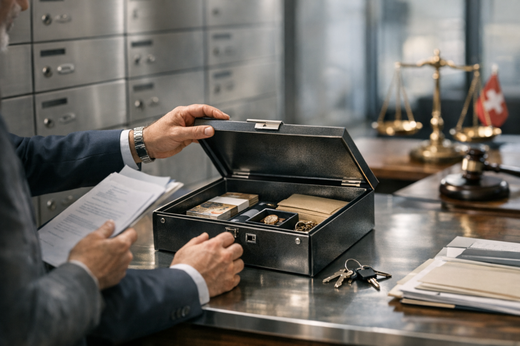 Décès et coffre-fort bancaire en Suisse romande: accès, inventaire, et erreurs qui déclenchent un conflit (2026)